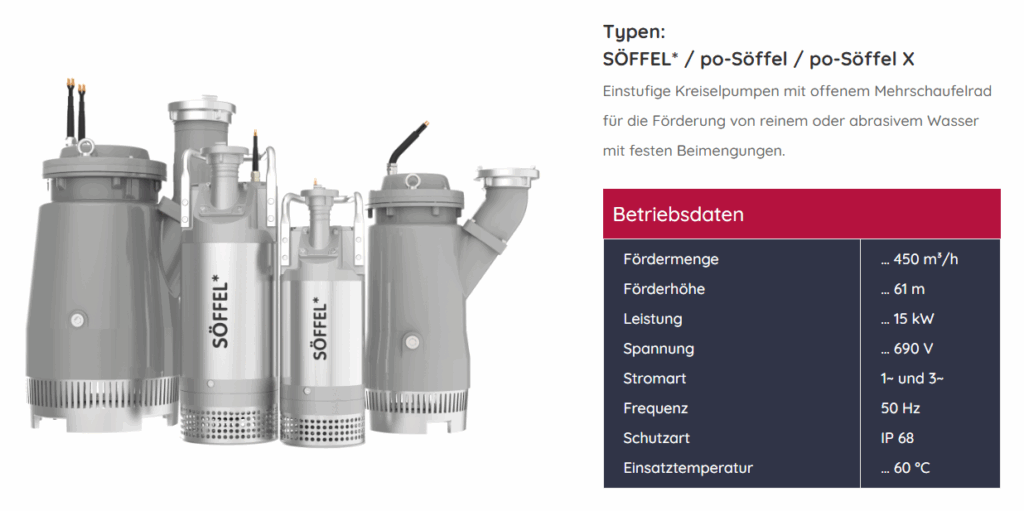 Mit ihrer robusten und kompakten Bauform sind diese Pumpen ideal für den Einsatz in der Wasserhaltung – etwa auf Baustellen, im Tunnelbau oder im Tagebau. Sie werden eingesetzt, um Gruben, Sickerschächte oder Baugruben trocken zu halten und das anfallende Wasser zuverlässig abzuleiten. Auch in Notfallsituationen, wie bei Überschwemmungen, leisten sie wertvolle Dienste durch ihre schnelle und effiziente Wasserförderung.